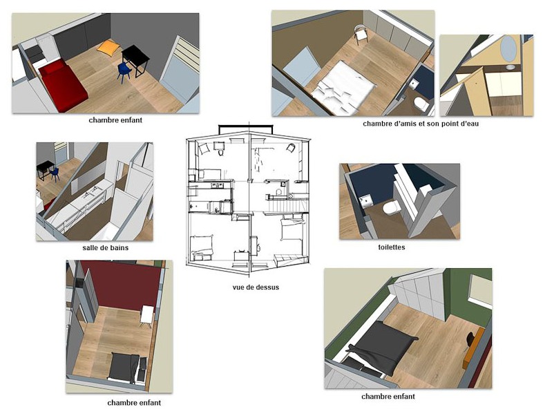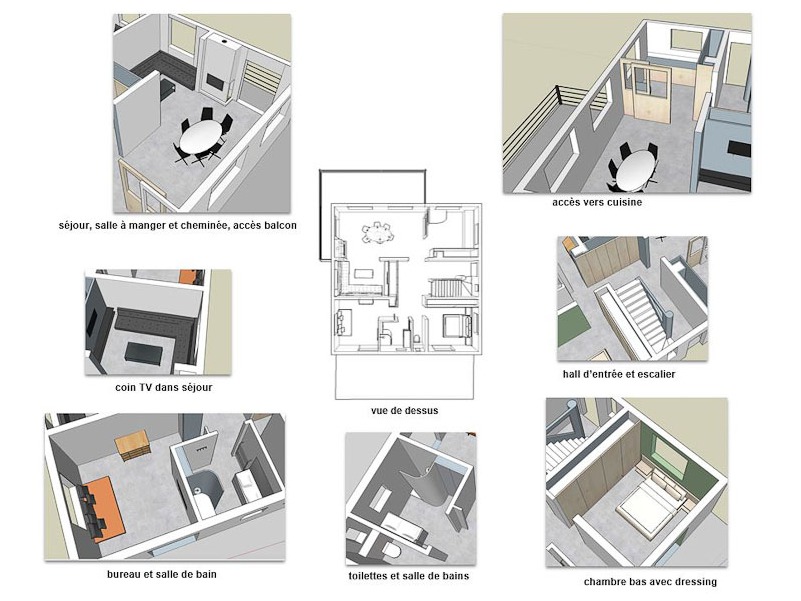 Représentations du futur agencement en 3 dimensions, avec intégration des choix de couleurs, des matériaux et du mobilier,